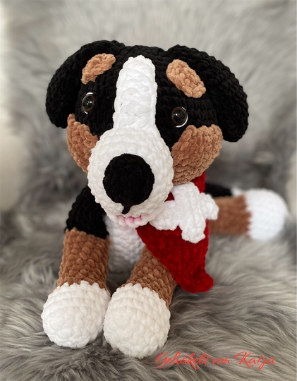 Ich habe den Hund als Geschenk für meinen Vater gehäkelt. Er hat sich riesig gefreut.