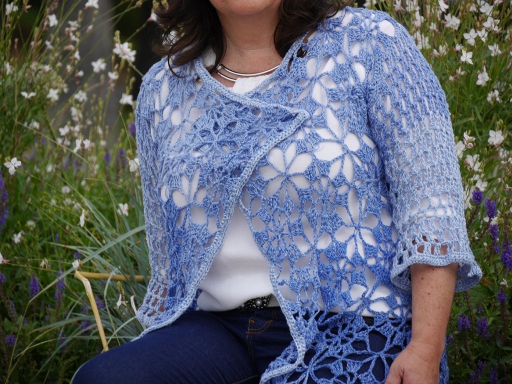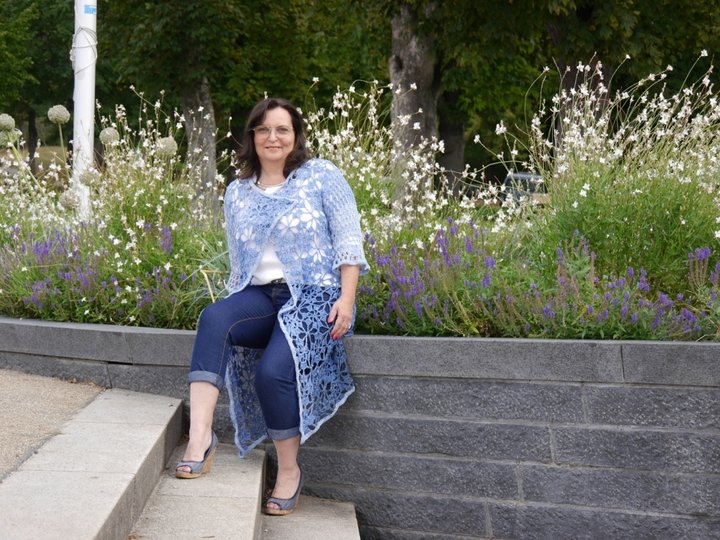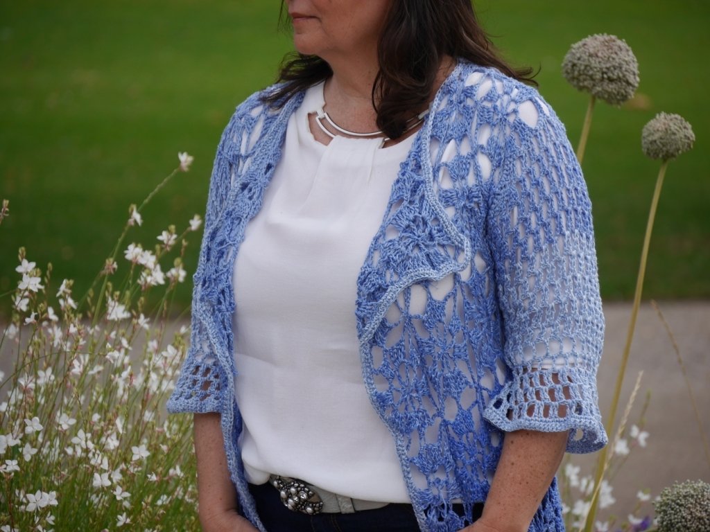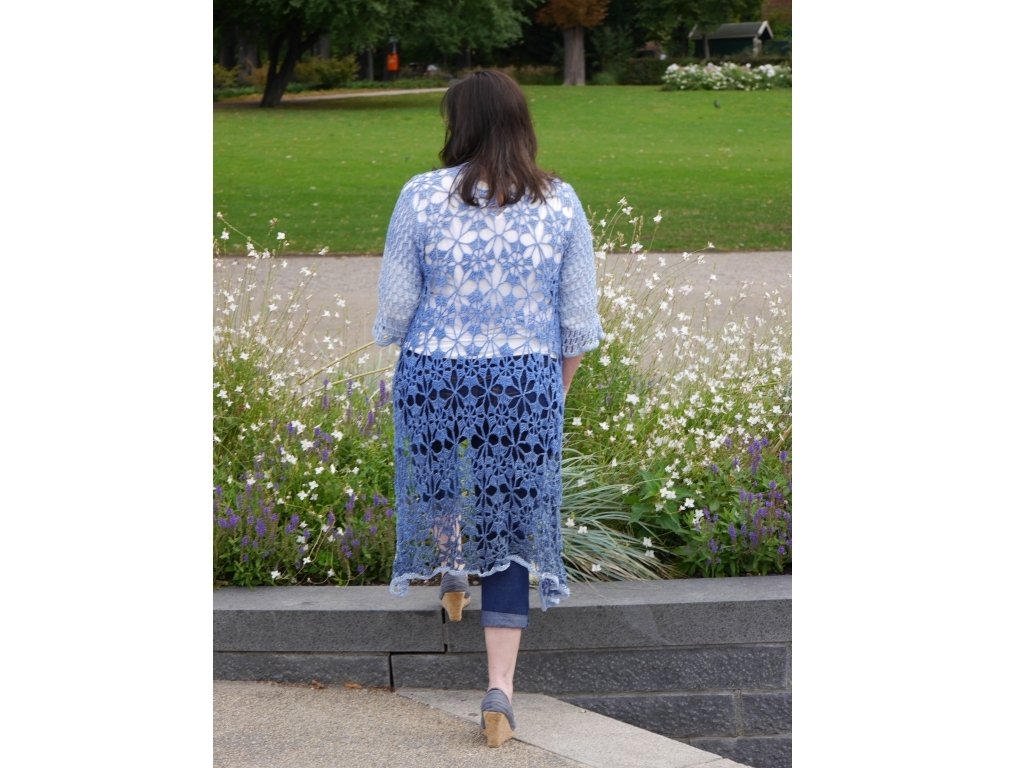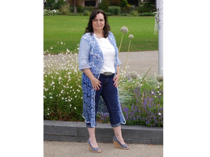 Passend zum Sommer Ausklang mal eine luftige Jacke/Mantel.Die mit 2 verschiedenen Ärmelvarianten gearbeitet werden kann.Die Länge der Jacke ist variabel und kann immer durch eine zusätzliche Reihe Grannies ergänzt werden, bis zur gewünschten Länge.