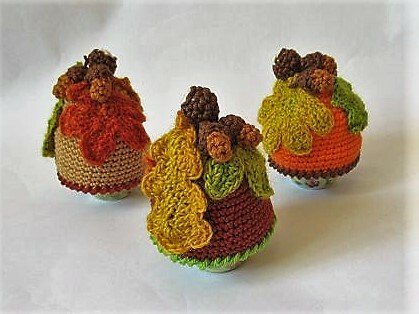 Wer den Herbst und seine bunten Farben liebt, der wird Freude an diesen wunderschönen Eierwärmern haben. Du kannst sie aus wenigen Wollresten nachhäkeln und bekommst so eine hübsche Tischdekoration - auch ohne Frühstückseiern darunter!
