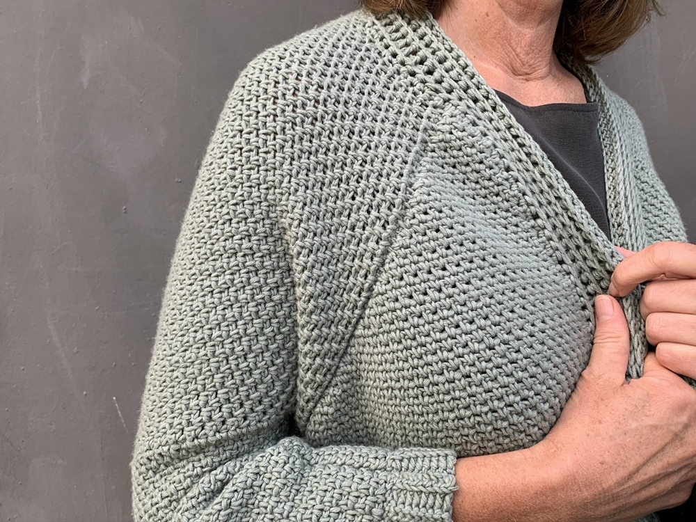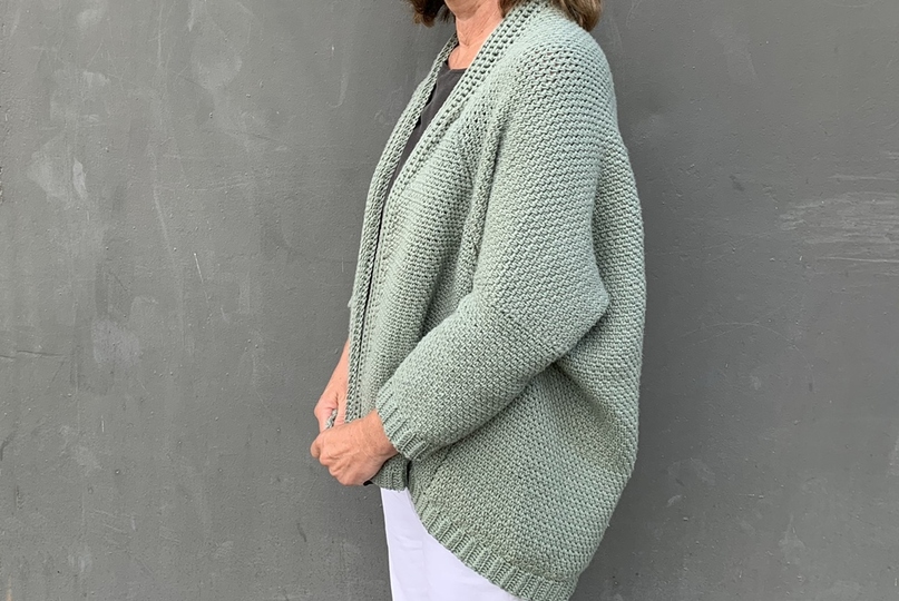 Lenny ist eine Jacke mit einfachen Basic-Muster aus festen Maschen und Luftmaschen.