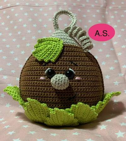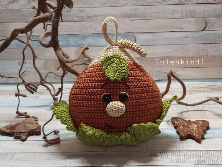 Das Haselnüsschen wurde mit Baumwollgarn (50g-125m) und einer 2,5 Nadel gehäkelt.