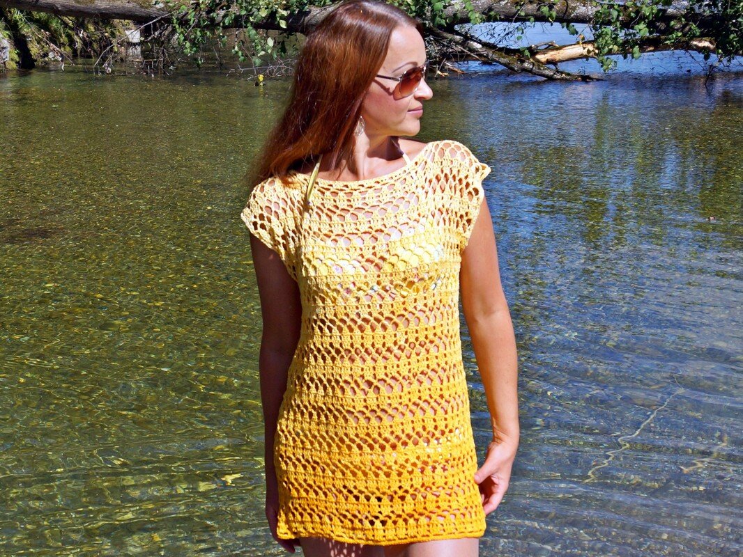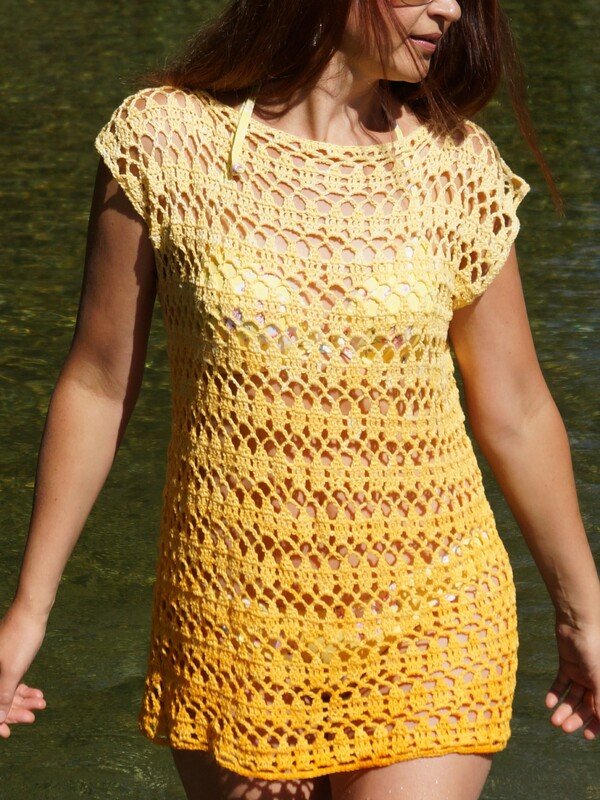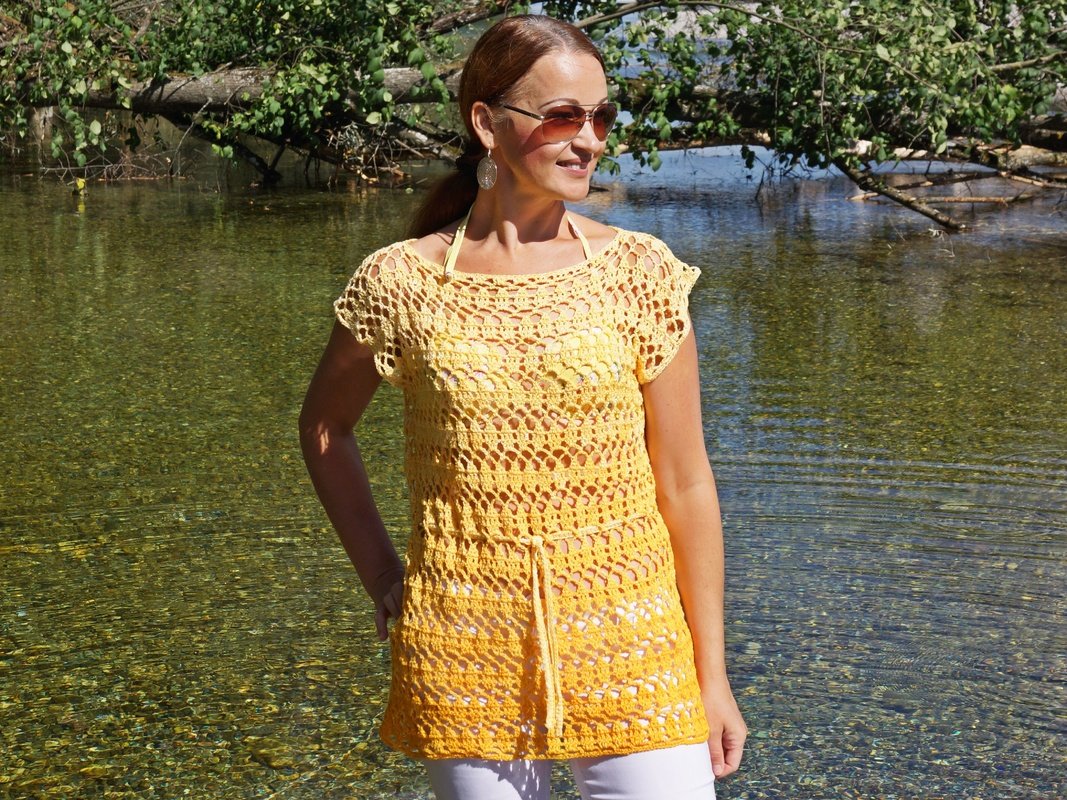 In einer bequemen Schlupfform und in sommerlicher Qualität, ist diese Srandtunika ein zeitloser Begleiter. Du kannst sie aber auch im Alltag zur Jeans anziehen und wenn du beim Häkeln sie verlängerst, kann daraus ein tolles Kleid entstehen.