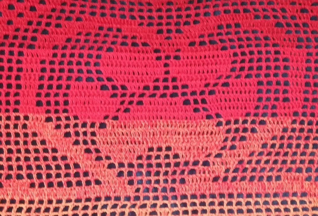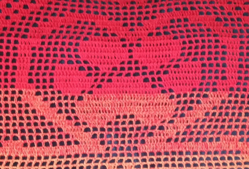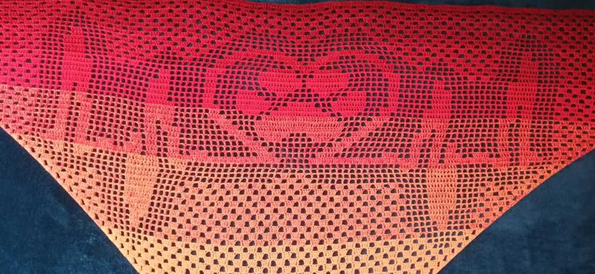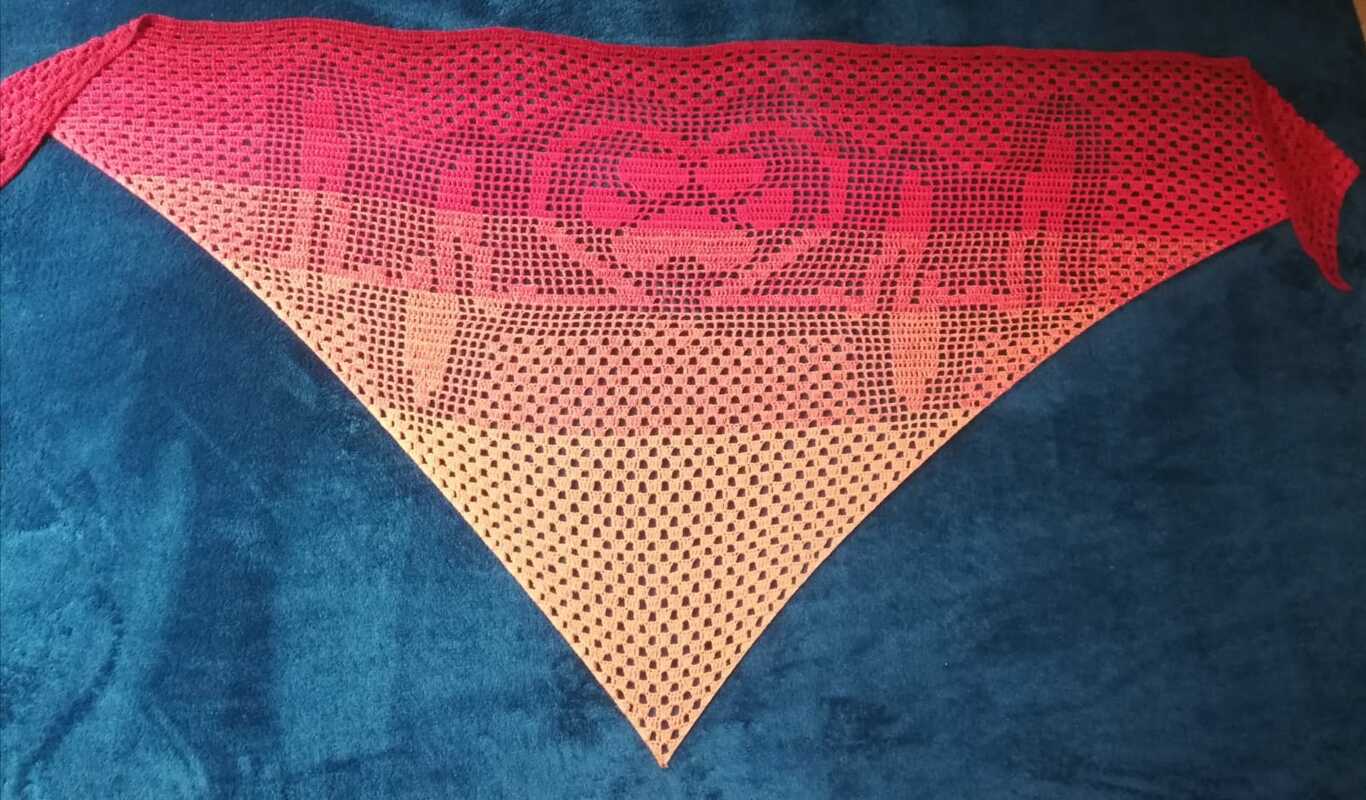 Die Anleitung ist auf 4 Seiten in teilweise Schrift (Erklärung Filethäkeln), der Anfang des Tuches in Pc-Häkelschrift und Zählraster geschrieben.