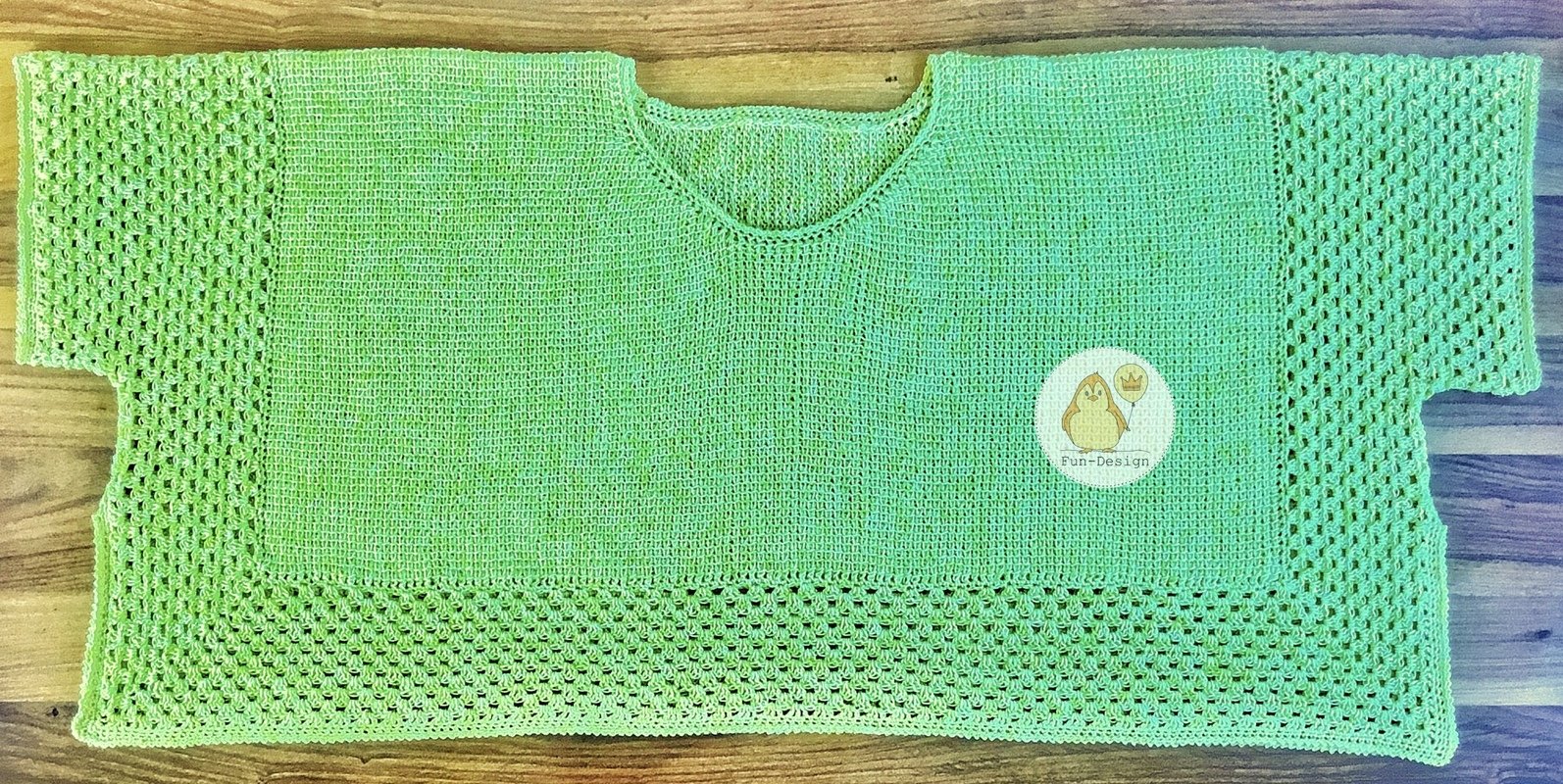 Durch den tunesisch gehäkelten Teil ist er besonders wärmend im Schulterbereich.