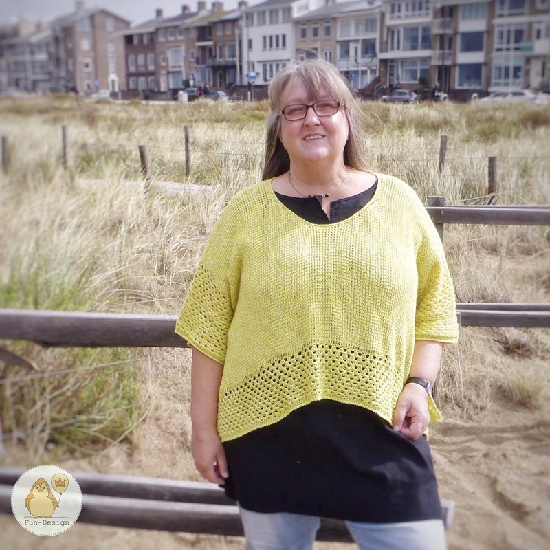 Gehäkelt wird mit einer tunesischen Häkelnadel mit Nadelstärke 6 und einer normalen Häkelnadel mit Nadelstärke 4