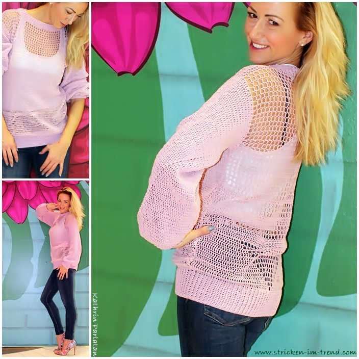 Mustertechnisch einfach gehalten - hier macht die Lochoptik den Pullover zum Hingucker!