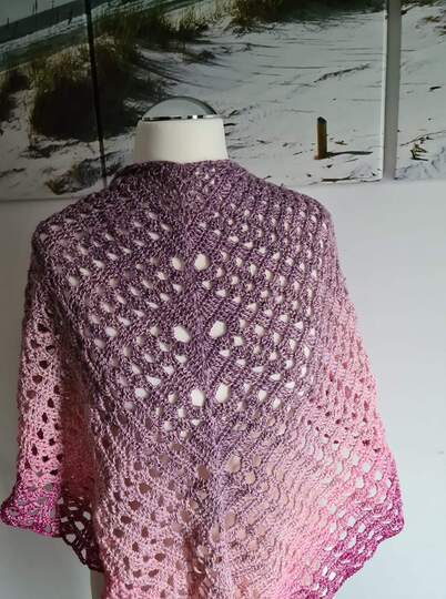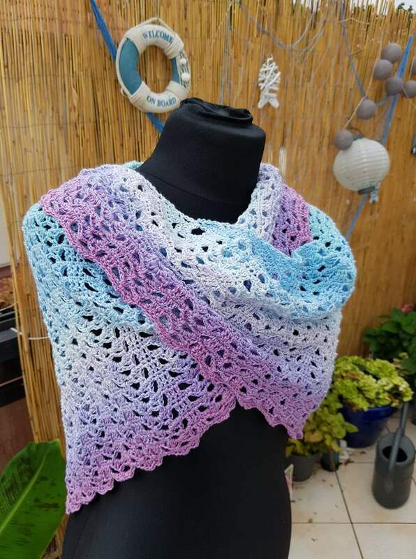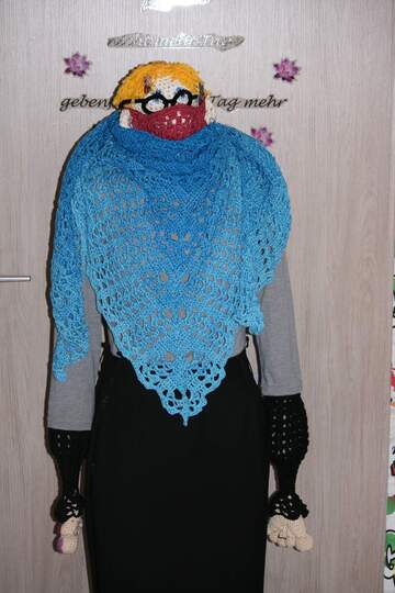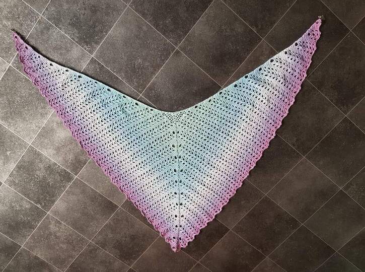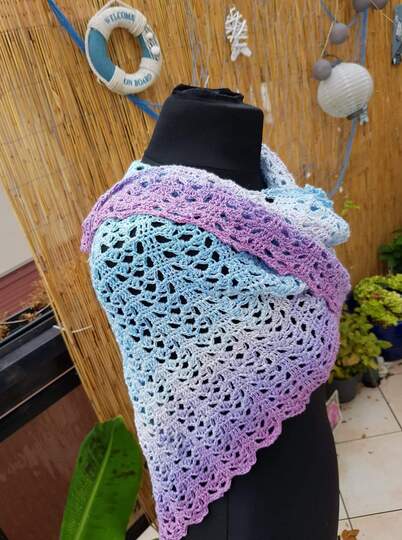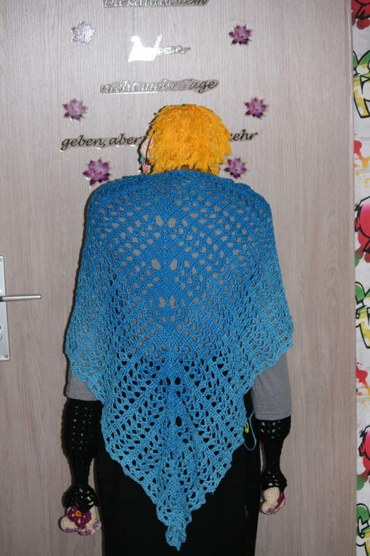 Das Tuch kann mit jeder Lauflänge gehäkelt werden, da es sich permanent wiederholt.