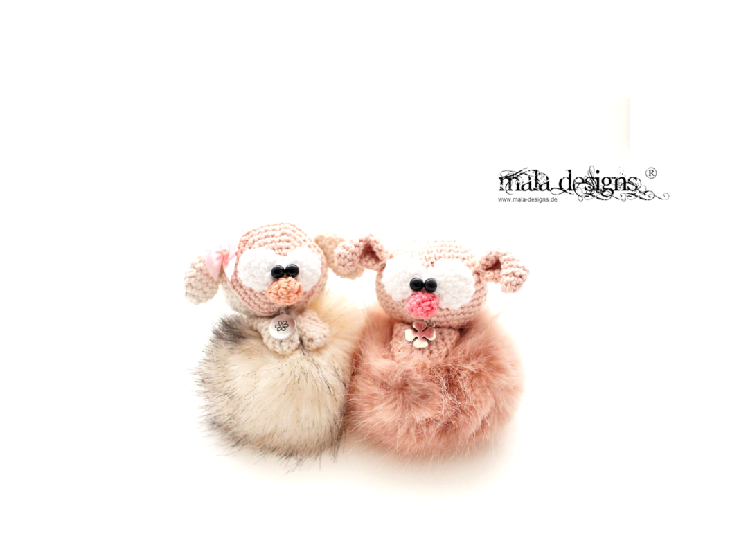 Diese Häkelanleitung beinhaltet die Beschreibung für die abgebildeten Bommelfiguren: Schaf, Rind, Schwein und den Hunden. Nach Fertigstellung werden die Figuren ca. 15 cm groß. Zusätzlich werden drei fertige Kunstfellbommel (Durchmesser ca. 10cm) benötigt.