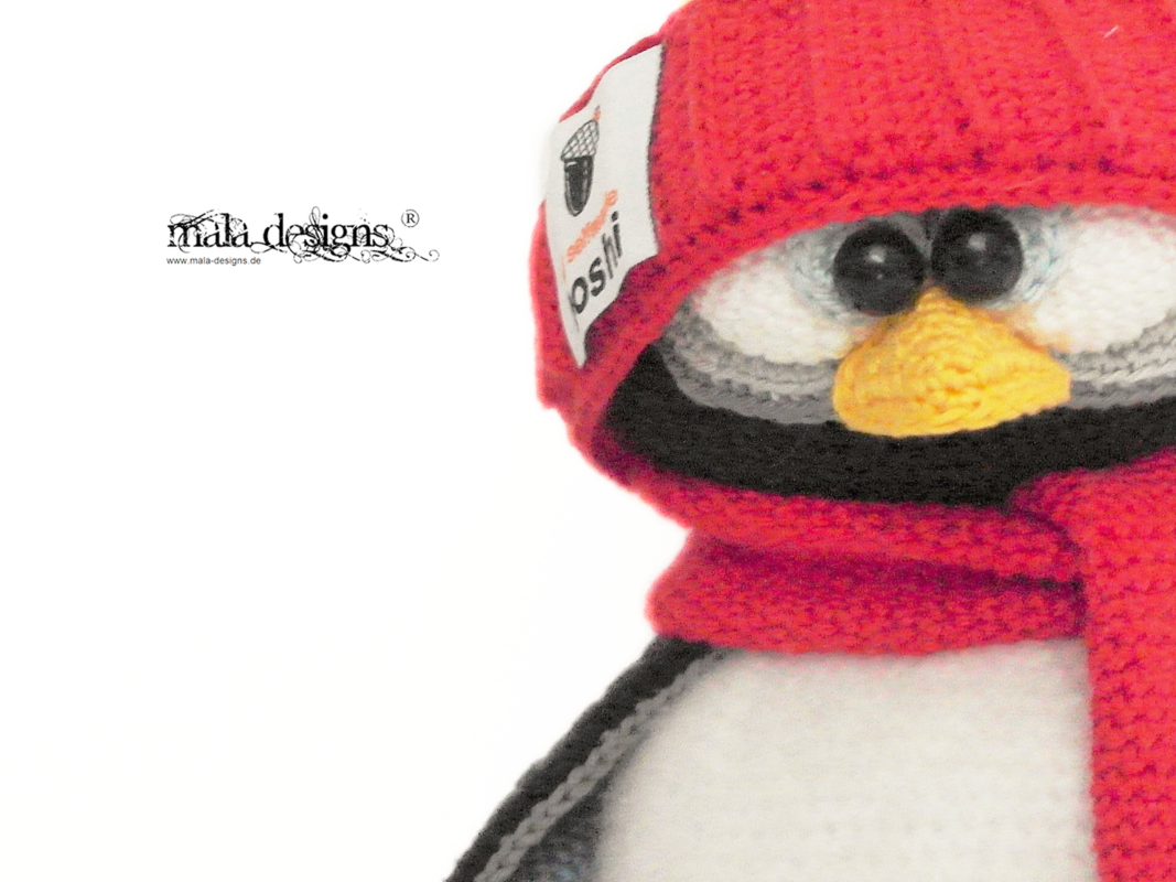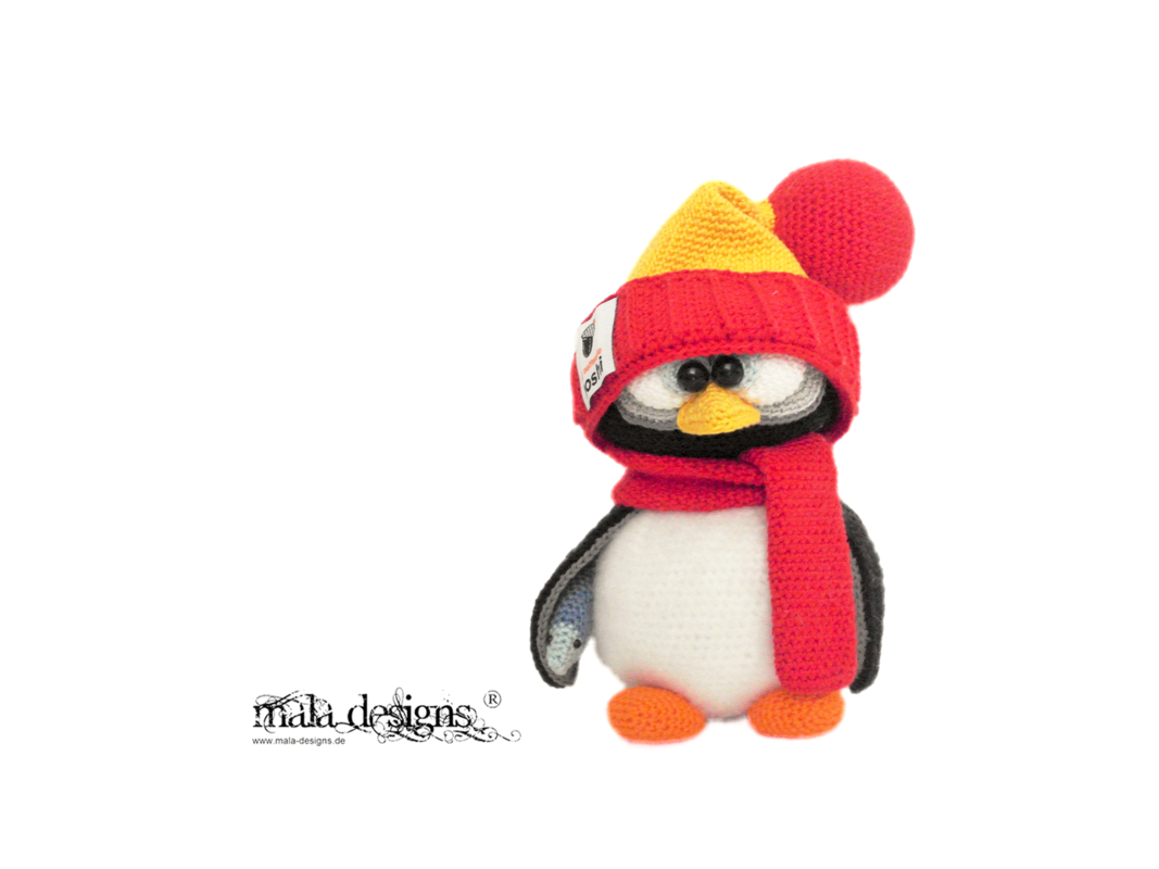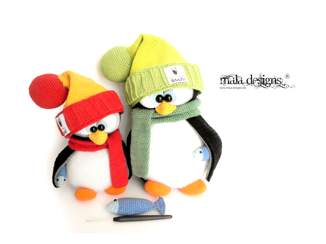 Der große Pinguin wird nach Fertigstellung ca 27cm (ohne Bommelmütze) groß; der kleine Pinguin dagegen 19 cm
