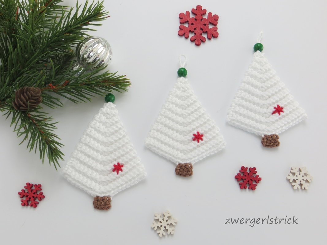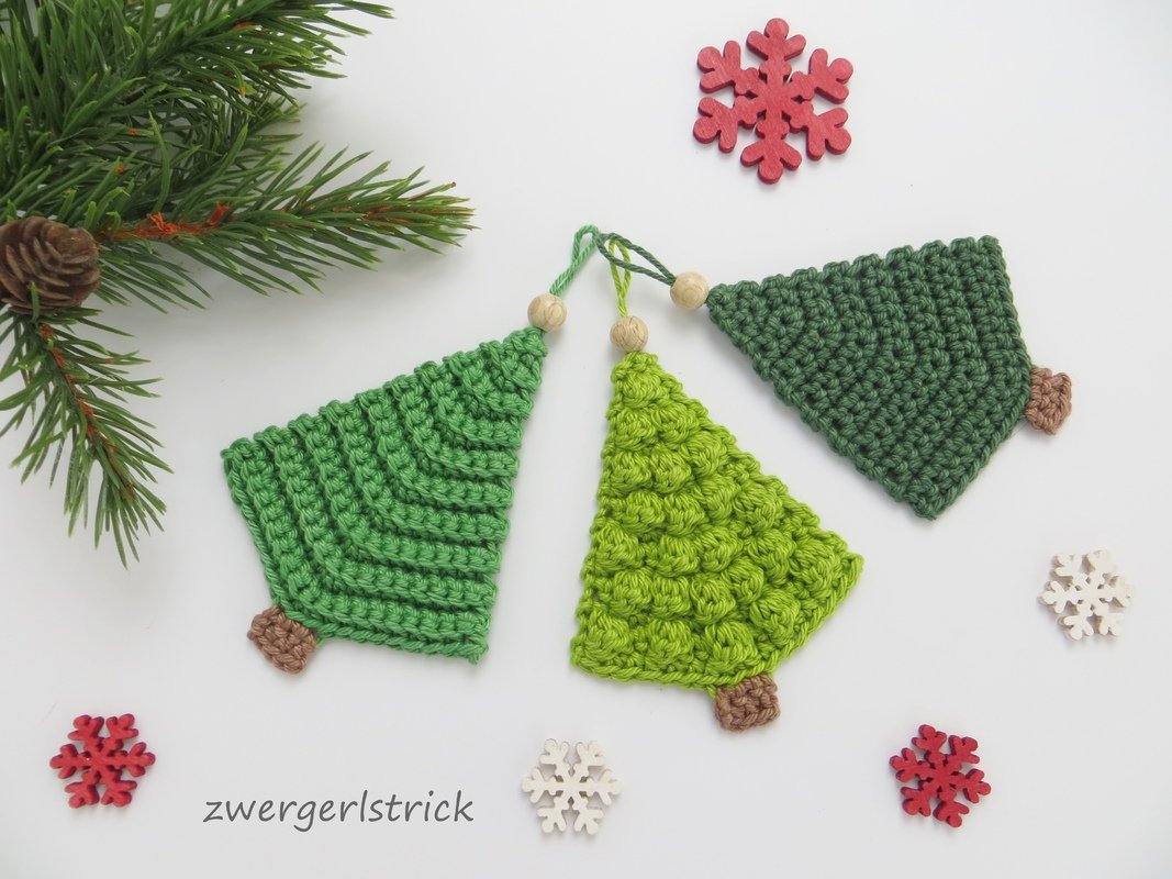 Häkelanleitung für schnelle Tannenbäumchen in 3 Varianten