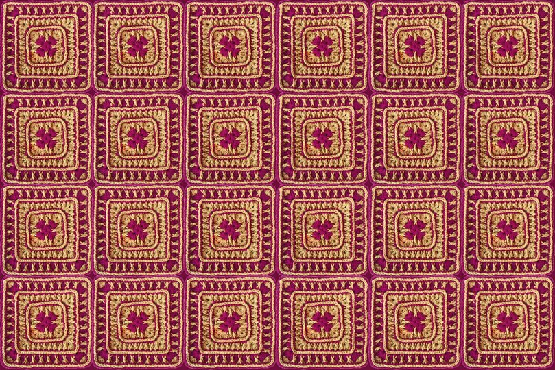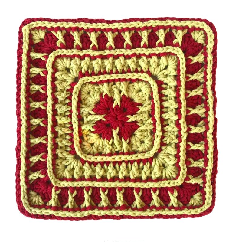 Mein fertiges Grannymuster "DiDi" mit 11 Runden, wiegt 106 gr und ist 27 cm breit und hoch