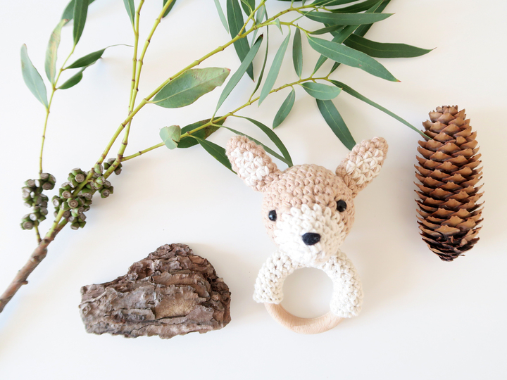 Beißring und Rassel in Einem. Somit ist das kleine Reh von GoldKindBerlin nicht nur ein Hingucker und Spielzeug, sondern erleichtert den Kleinen auch das Zahnen. Dieses Tutorial beschreibt die Herstellung der Rassel. Es handelt sich um KEIN fertiges Produkt.