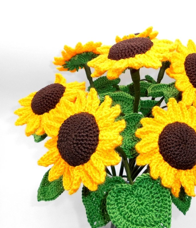 Die Gesamtlänge der Sonnenblumen kann nach Belieben gearbeitet werden