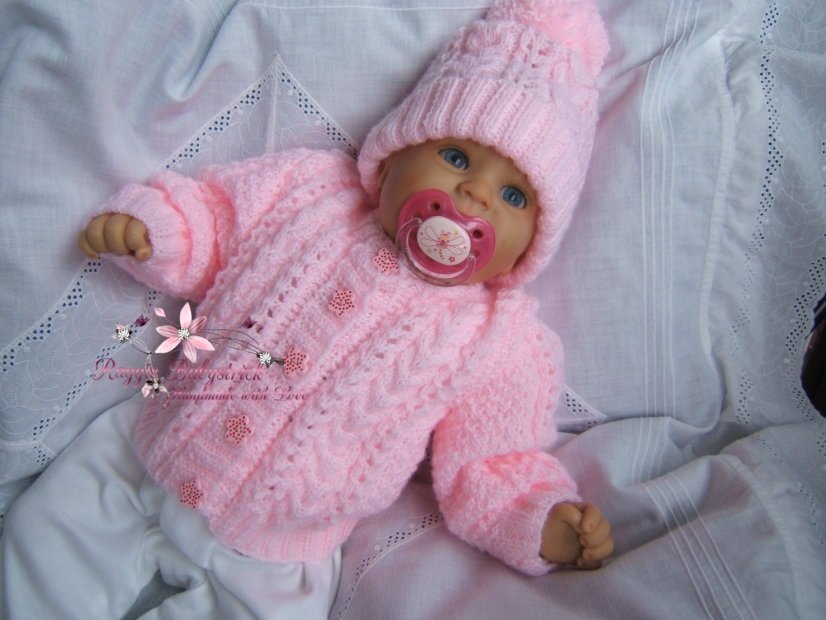 Ein Album mit 10 Strickanleitungen für wunderschöne Sets, Die Sets sind aus Babysoftwolle Nd. - Nr. 2,75 gestrickt. Die Anleitungen sind sehr genau beschrieben und mit vielen Fotos. Du kannst mit diesen Schritt – für – Schritt – Anleitungen die Sets leicht nacharbeiten.