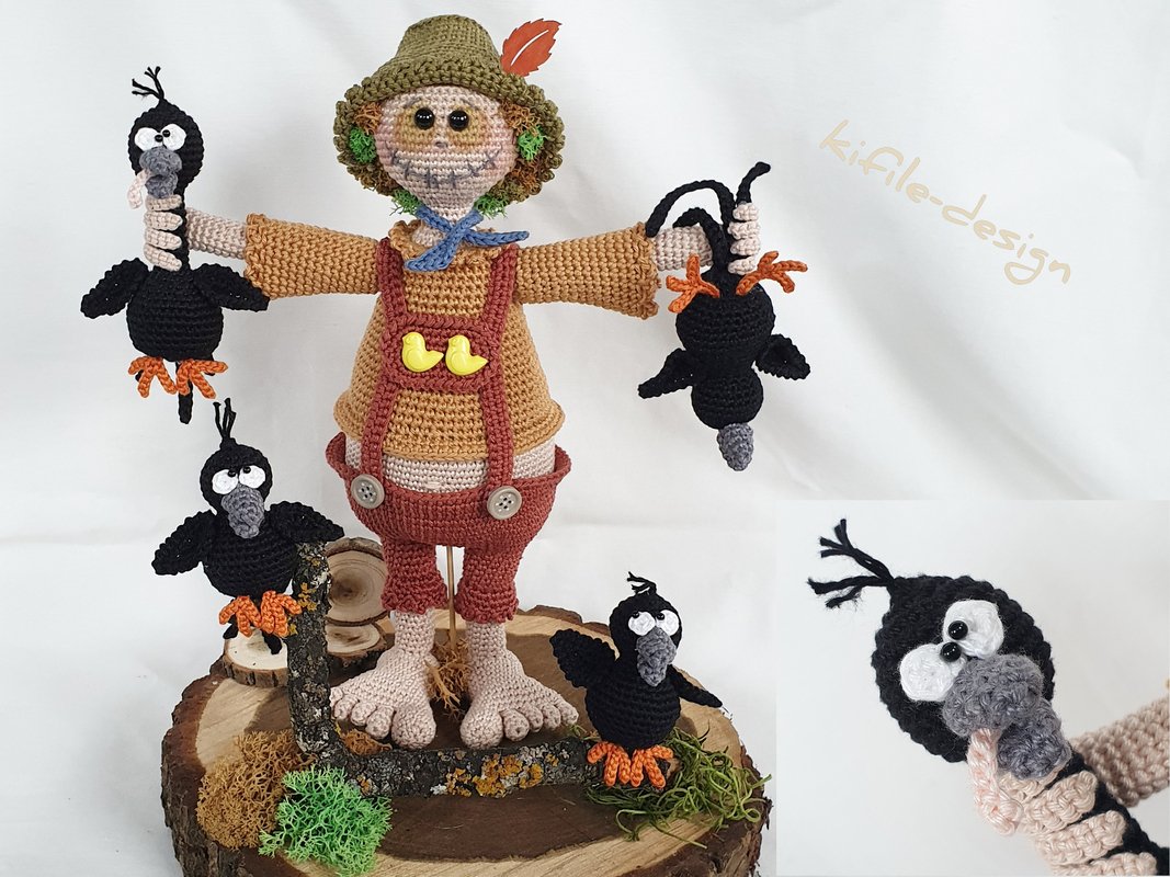 ○ Baumwolle 50gr / 125m ( zB : Schachenmayr Catania , Sheepjes Catona oder Woll Butt Camilla ) , 1 Knäuel in hautfarbe , 1 Knäuel in schwarz ( für 4 Raben ) , 25 gramm deiner Wahl für die Hose , 25 gramm deiner Wahl für das Hemd , 16 gramm deiner Wahl für den Hut , weiters noch Reste in orange , grau , weiß , rosa und eine Wunschfarbe für das Halstuch