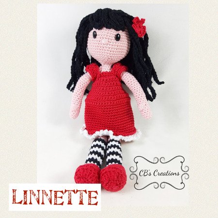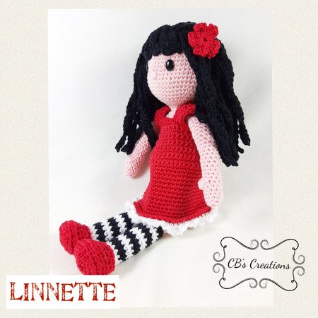 Linnette ist 32cm groß. Dieses hübsche Mädchen kann ihre Schuhe und ihr Kleid tragen, so dass sie auch etwas anderes anziehen kann! Gehäklet mit Baumwolle.