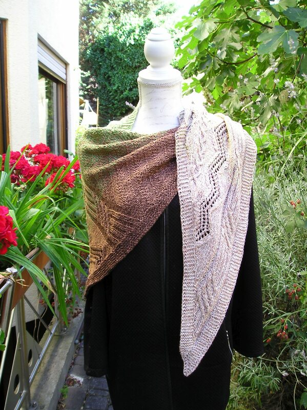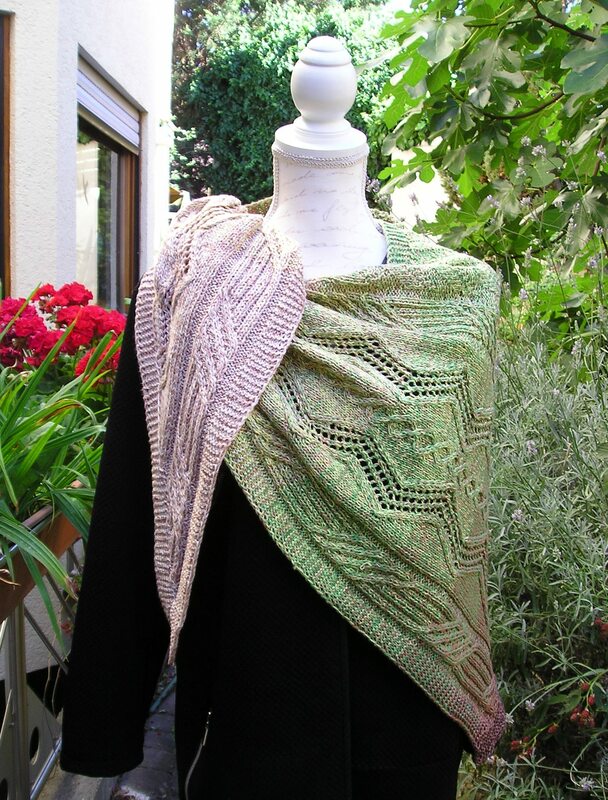 Strickanleitung Dreieckstuch "Feldrand". Mix aus Ajour-Muster und Zopfmuster aus 5-fädigem Baumwollgarn
