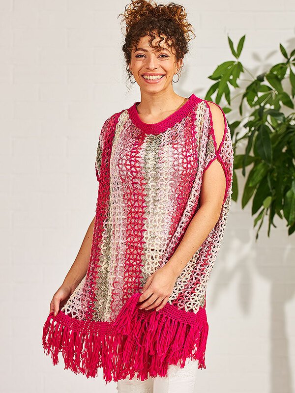 Dieser luftige Poncho ist nicht nur für den Sommer, auch im Winter als Hingucker ist er ein ideales Pölsterchenverstecker.