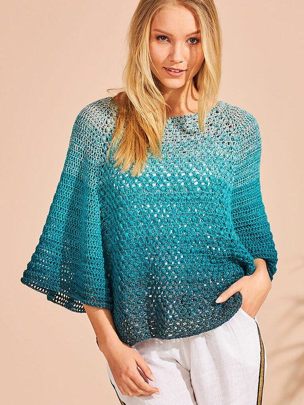 Dieser schicke Überziehpulli ist besonders leicht zu häkeln. Einfach von oben nach unten, ganz ohne Naht.