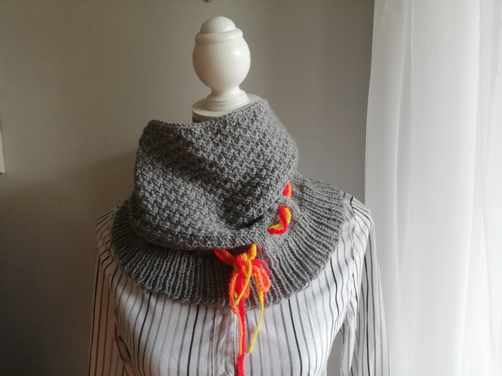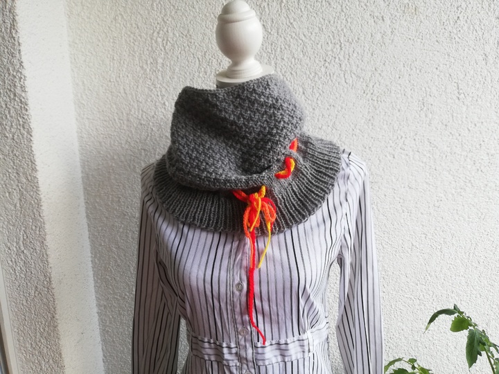 Diesen tollen Loop habe ich entworfen, weil ich Grau liebe, aber auch etwas Farbe mit ins Spiel bringen wollte.