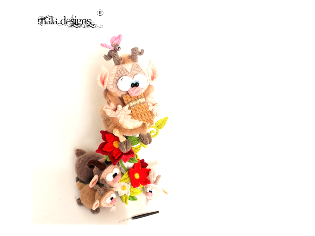 Diese Häkelanleitung enthält die für Pan und die Säulendetails. Pan wird nach Fertigstellung ca. 28cm x 16 cm (HxB) groß.