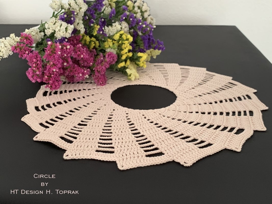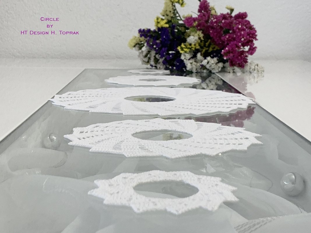 Circle gibt es in 7 Grössen zu Häkeln. Alle Deckchen haben eine eigene Häkelschrift und Fotos.