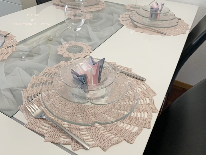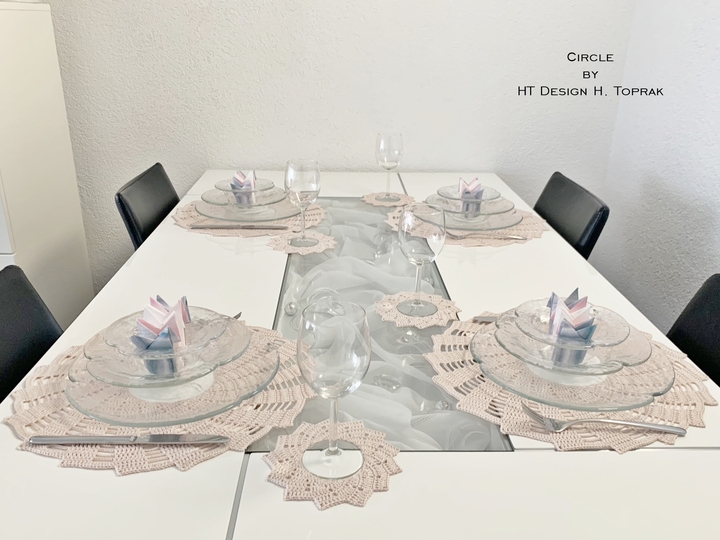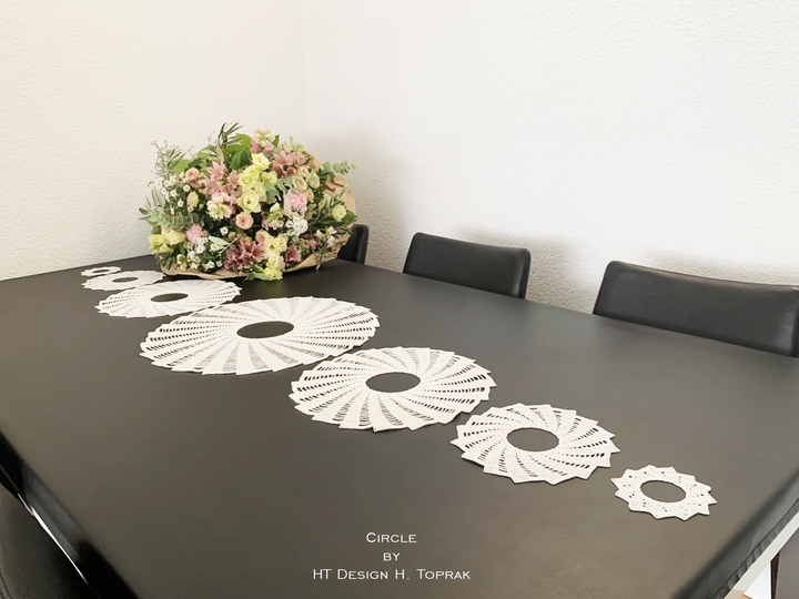 Circle in 7 Grössen, für die moderne Einrichtung. Man kann es als Platzset, Tischläufer, Dekodeckchen, Teppich und Untersetzer usw...
