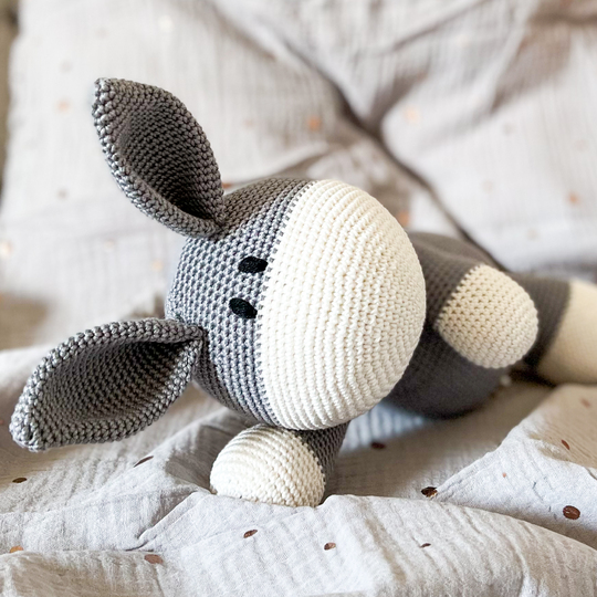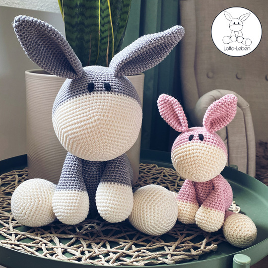 Mit der angegebenen Wolle wird der Esel insgesamt ca 38cm groß.