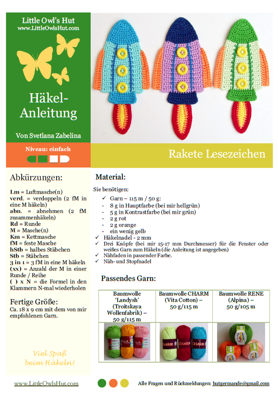 Häkelanleitung Lesezeichen oder Hausdeko für Kinderzimmer