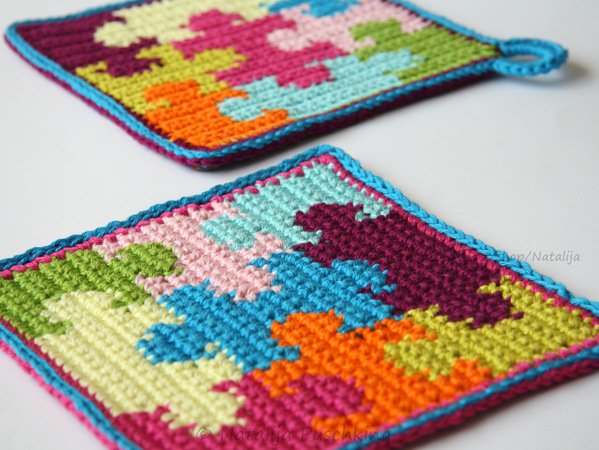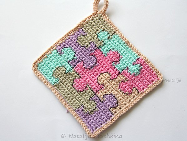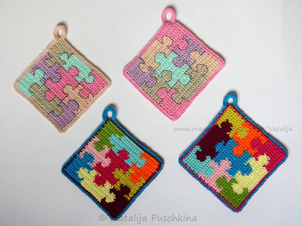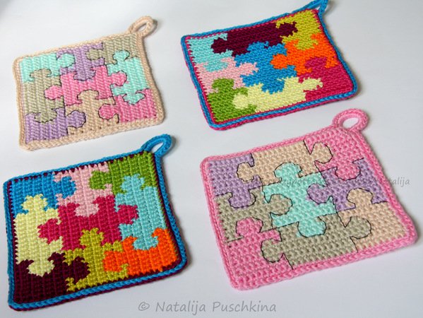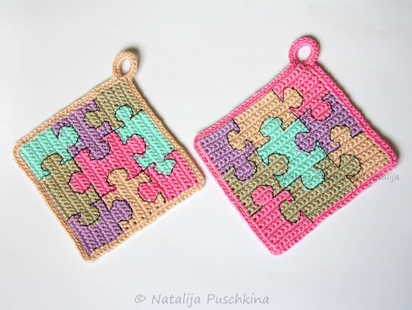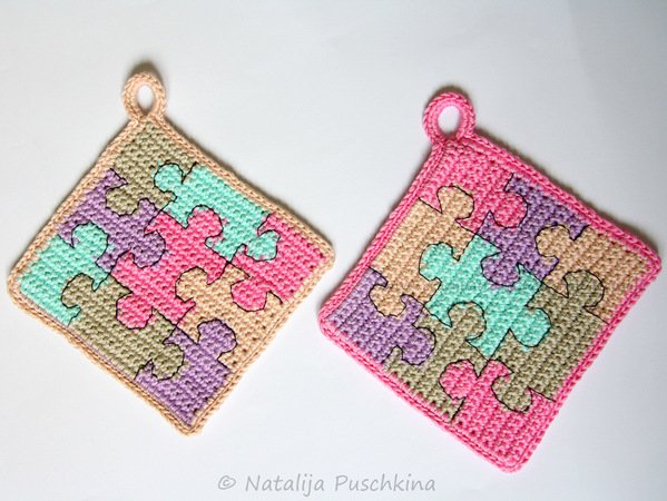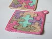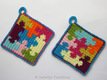Mit diesen herzigen Topflappen 'Puzzle' macht das Kochen gleich doppelt so viel Spaß. Als Gastgeschenk oder auch als Dekorationsobjekte in der Küche sind diese Topflappen sehr zu empfehlen.
