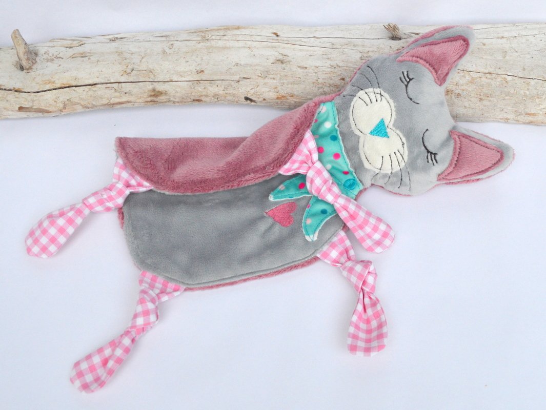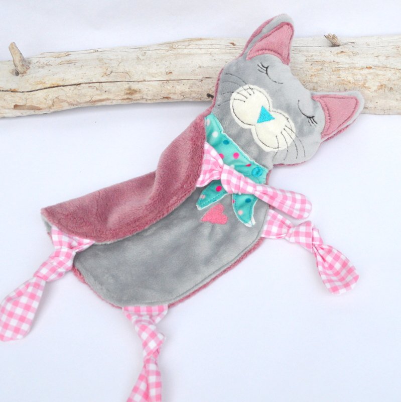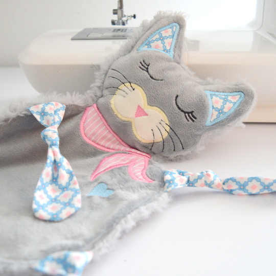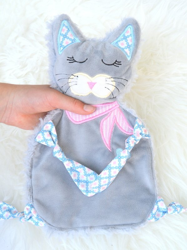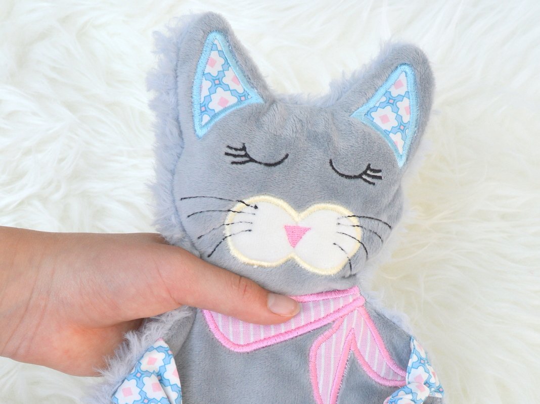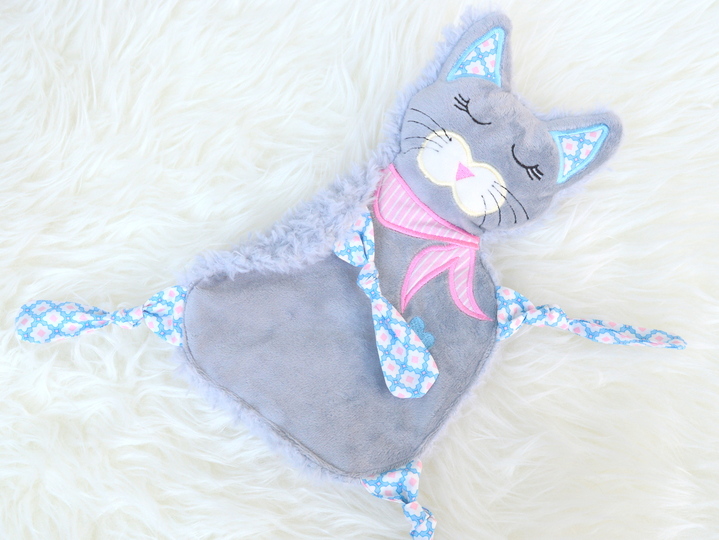 Schmusetuch Katze ITH Stickdatei,süßes Schmusetuch kleine Katze Kimba.
