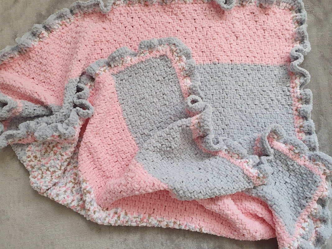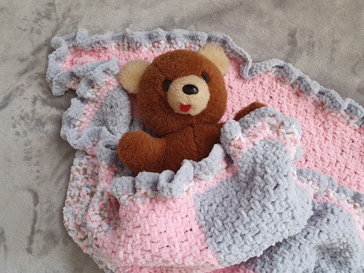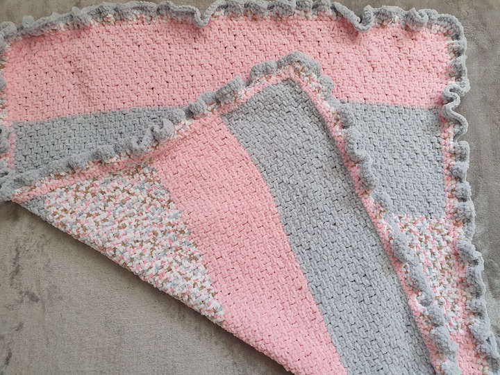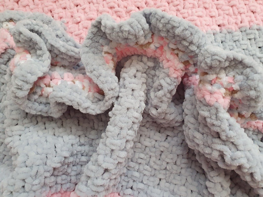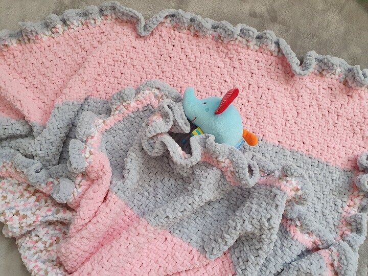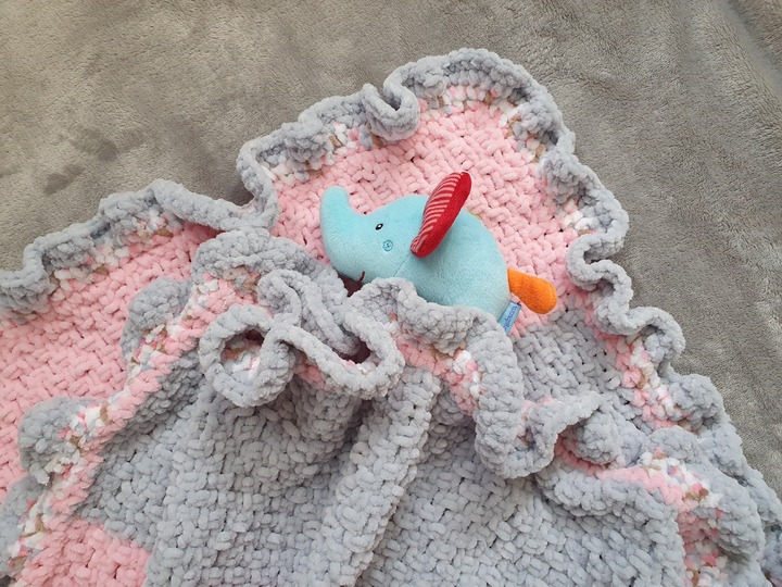 Diese kuschelweiche und leichte Babydecke mit gekäkelter Rüsche aus chenillartiger Wolle ist ein wunderbares Geschenk zur Geburt oder Taufe. Sie ist ein ständiger Begleiter bis ins Krabbelalter und später eine schöne Erinnerung an die Kinderzeit.