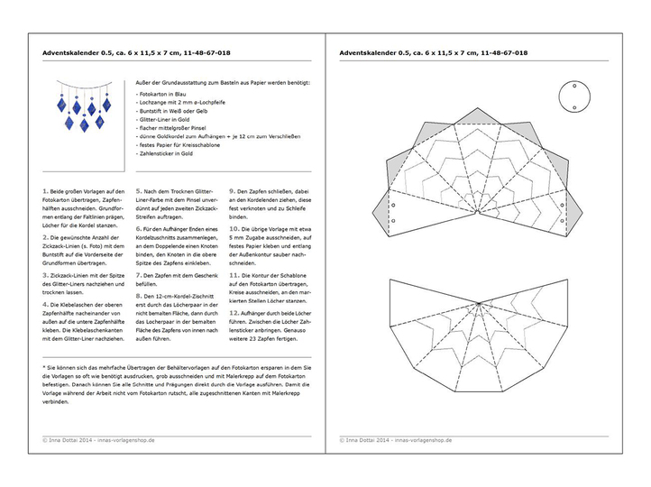 Die PDF-Datei besteht aus einer Anleitungsseite und einer Seite mit Vorlagen in Originalgröße.