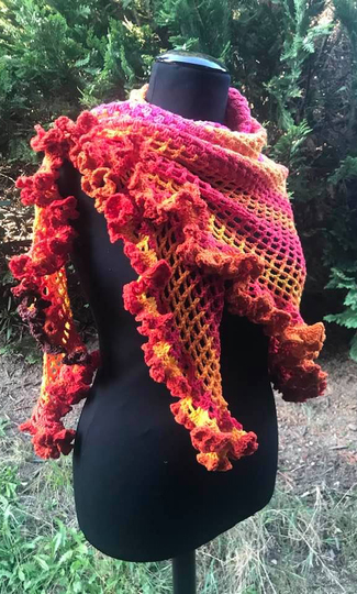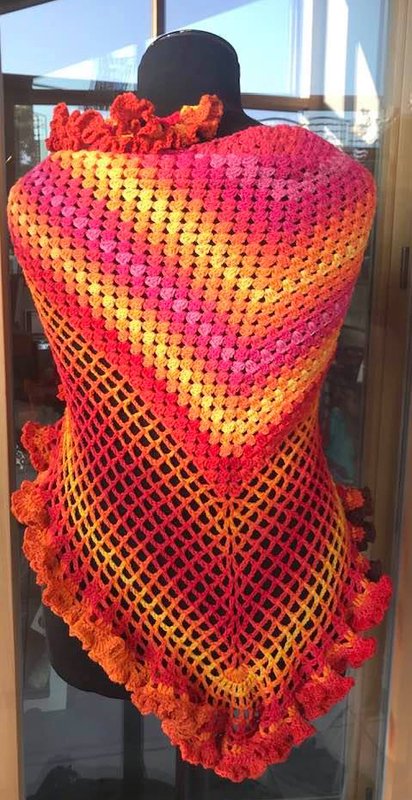 Einfaches Tuch "SOFAPÜPPCHEN": hier beginne wir mit dem beliebten Halfgrannymuster, dann ein Gittermuster und als Rand die typischen Rüschen eines Sofapüppchens aus den 70ziger Jahren...