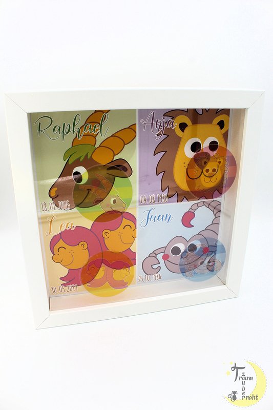 Als die zwölf Tierkreiszeichen des Zodiaks werden die Sternzeichen Widder, Stier, Zwillinge, Krebs, Löwe, Jungfrau, Waage, Skorpion, Schütze, Steinbock, Wassermann und Fisch bezeichnet. Jeder von uns hat sein persönliches Sternzeichen und die passenden Eigenschaften und Kennzeichen. Man kann daran glauben oder nicht, ich finde es aber so oder so ein wunderbares Symbol für den ganz persönlichen Charakter.