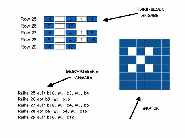 -farbige Zahlen-Blöcke für jede Zeile für C2C-Technik