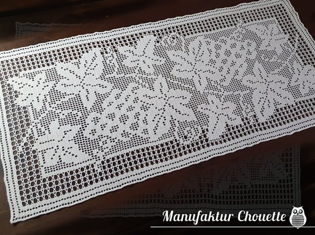 Du kannst gern so viele Tischläufer häkeln, wie Du möchtest. Mit einem Hinweis auf mein Urheberrecht der Anleitung darfst Du Deine selbst hergestellten Tischläufer auch zum lokalen Kauf anbieten. Angebote als Auktion sind NICHT gestattet!"