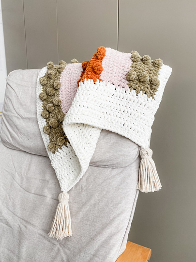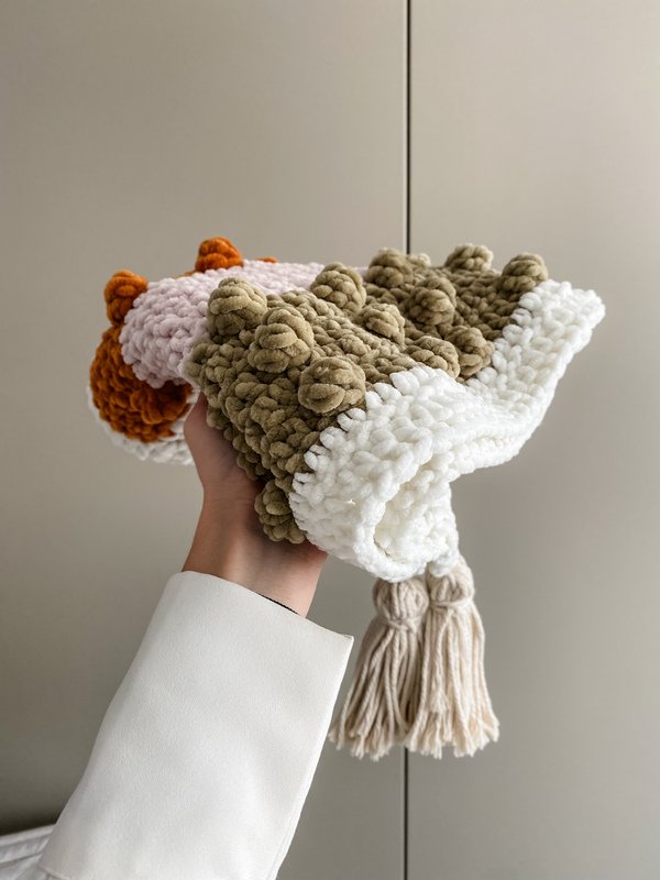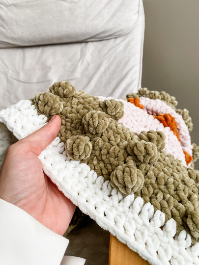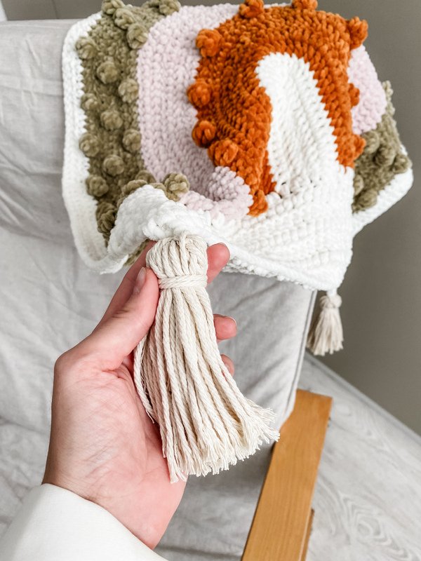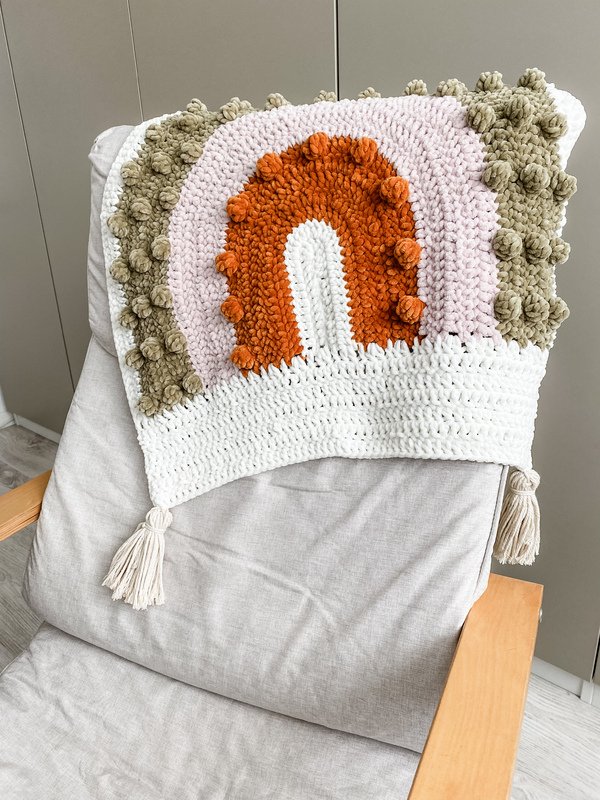 Die Maße der fertigen Decke beträgt 60x65cm.