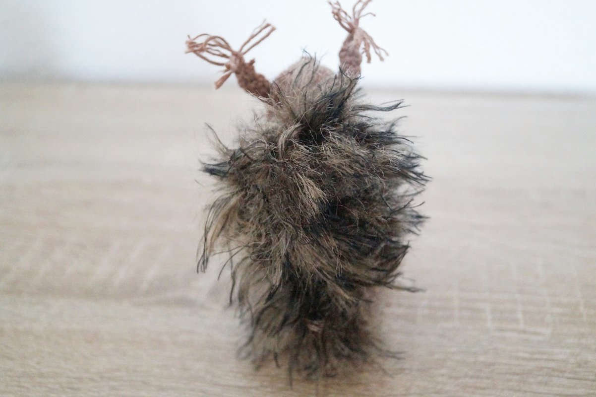 das Tierchen wird ca. 12 cm , natürlich kann die Größe unter Verwendung anderer Wolle variieren
