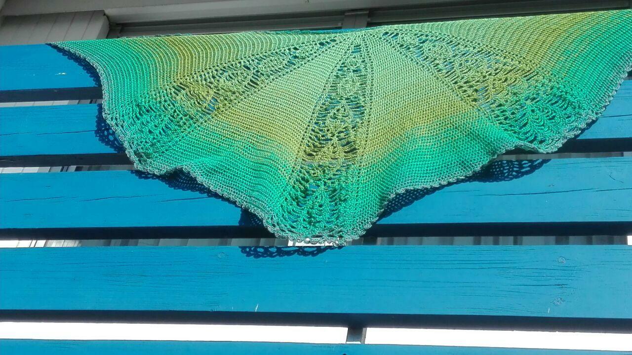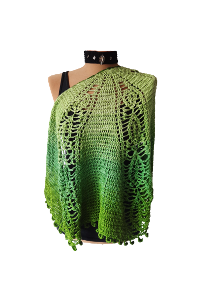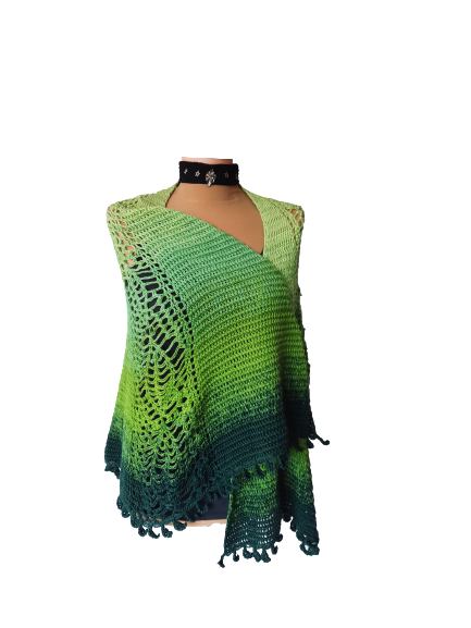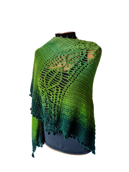 Green leaves ist ein halbrundes Tuch, für Groß und Klein. In 2 verschiedenen Längen häkelbar und somit ganz individuell für dich anpassbar.
