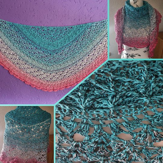 Das Tuch Schwesterntreue gibt es in 2 Versionen, diese Anleitung ist für ein halbrundes Tuch.