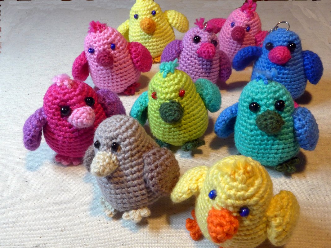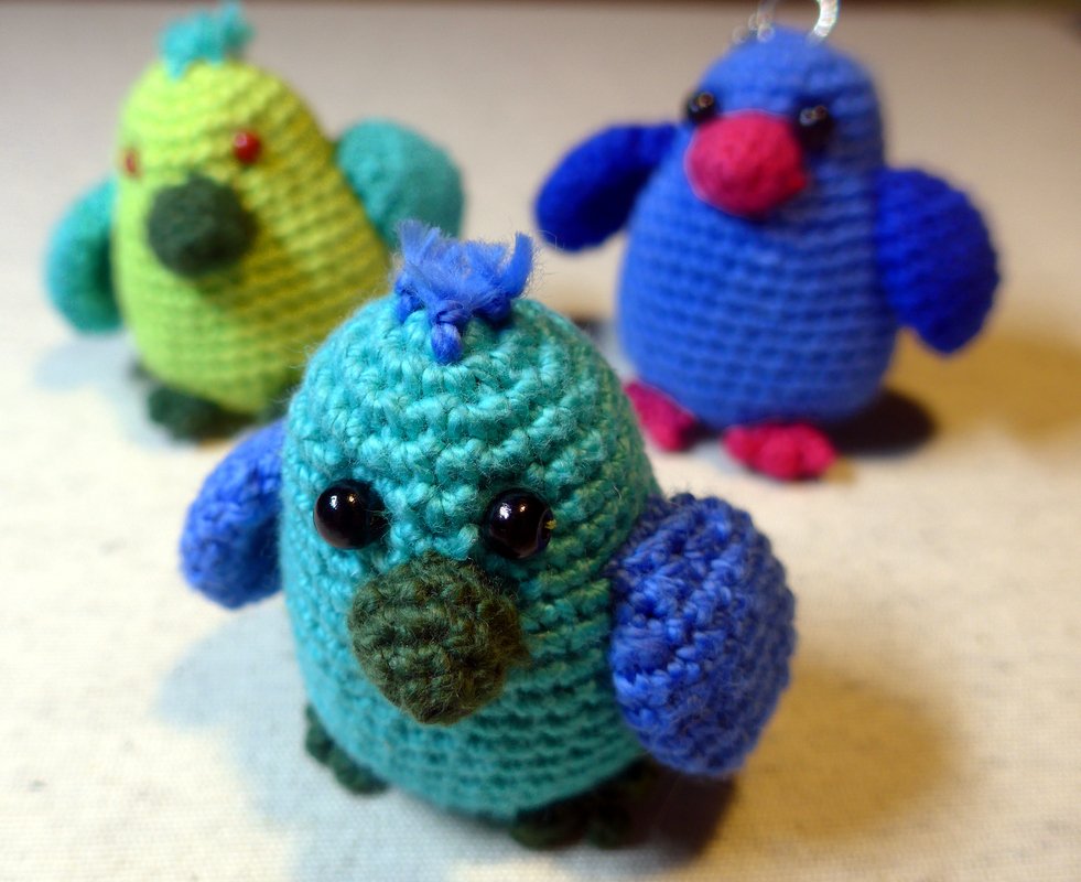 Nach dieser Anleitung könnt Ihr kleine bunte Vögel häkeln. Die Vögel eignen sich hervorragend als Schlüsselanhänger, Taschenbaumler oder Talisman. Sie sind perfekte Mitbringsel für einen lieben Menschen oder kleine Geschenke für die Einschulung, zum Mutter- oder Valentinstag, zur bestandenen Führerscheinprüfung...