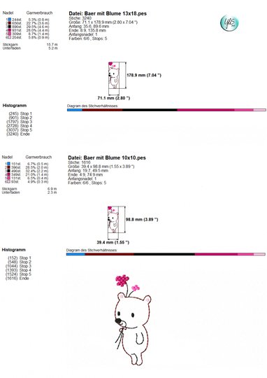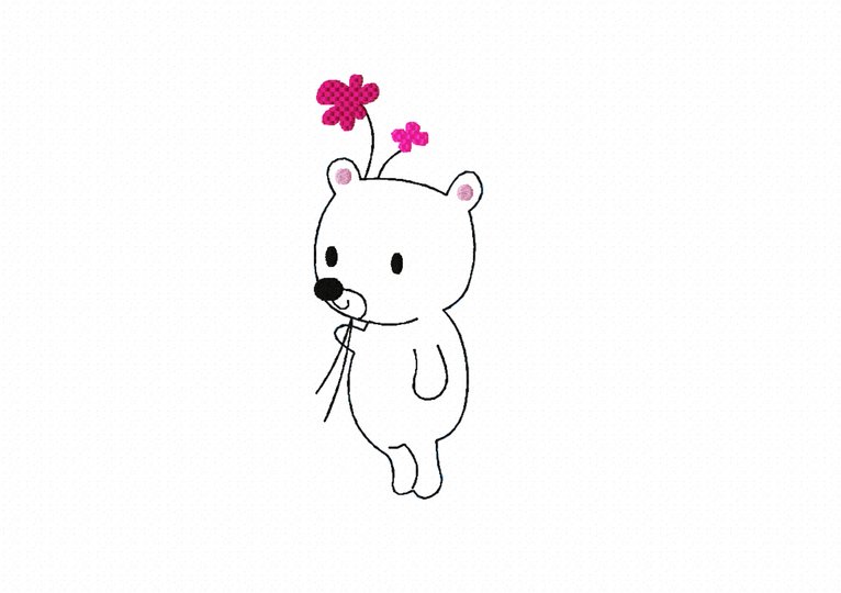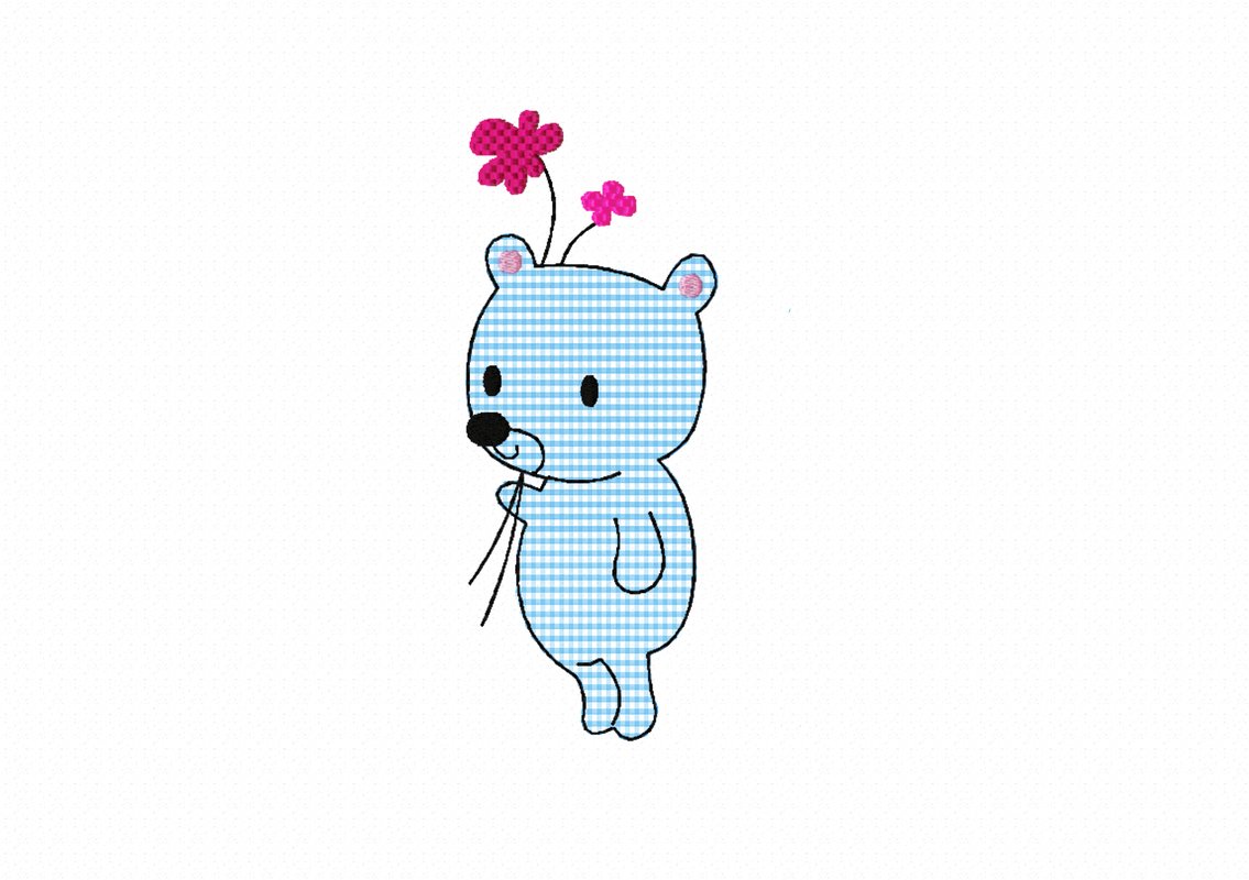 Stickdatei Bär mit Blume in zwei Größen 10 cm x 10 cm und 13 cm x 18 cm