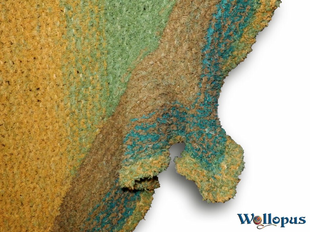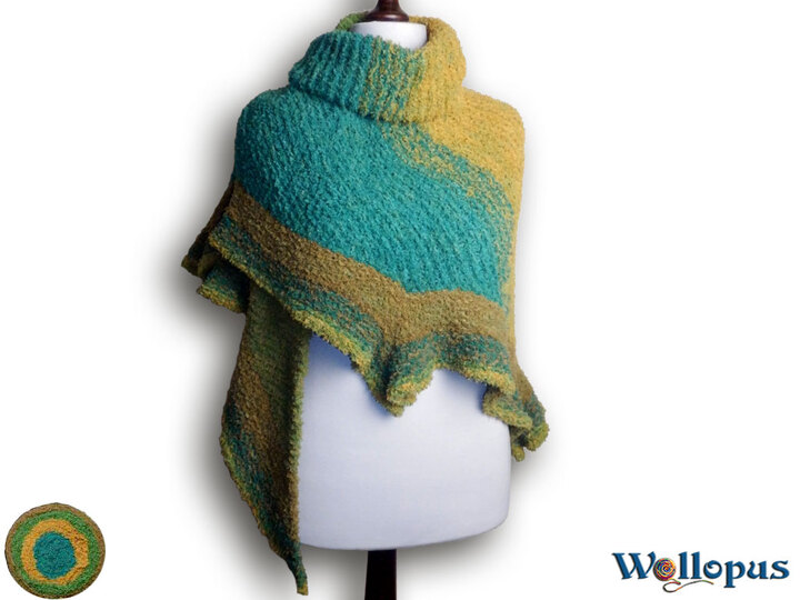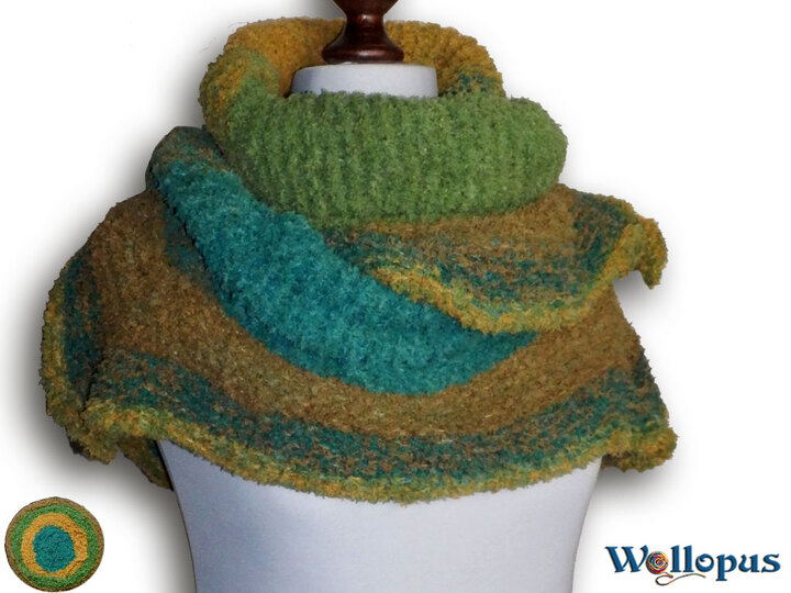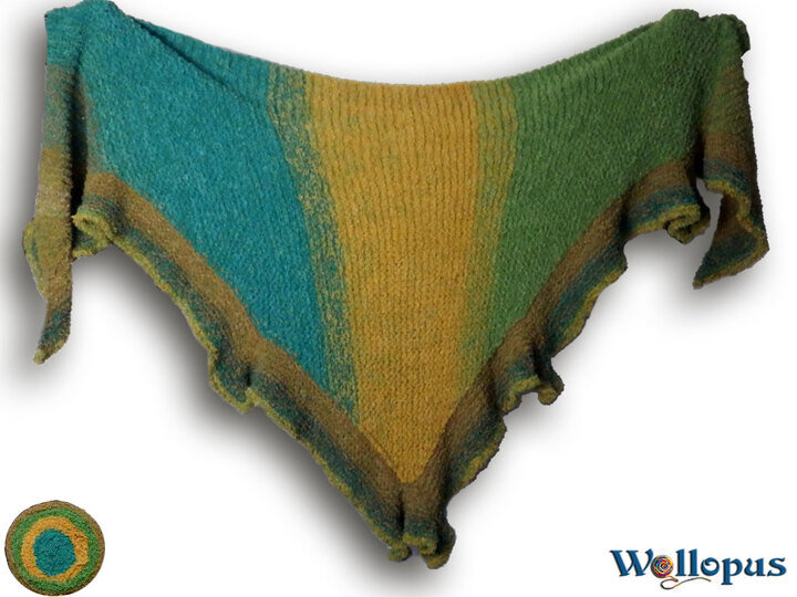 Farbverlaufsbobbel in Szene gesetzt. Das besondere daran sind die Zipfel, die das Tuch auflockern. Mit einem doppeltem Faden oder dicker Wolle ist das Tuch auch ruckzuck fertig.