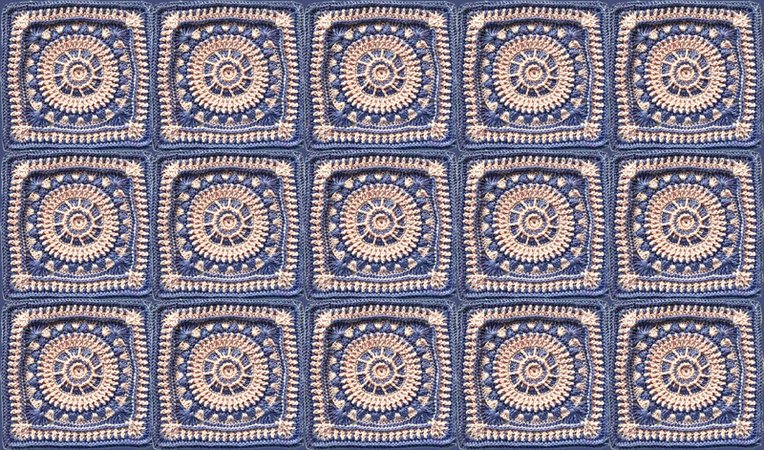 Ein fertiges Grannymuster BABY hat 17 Runden und ist 27 cm breit und hoch