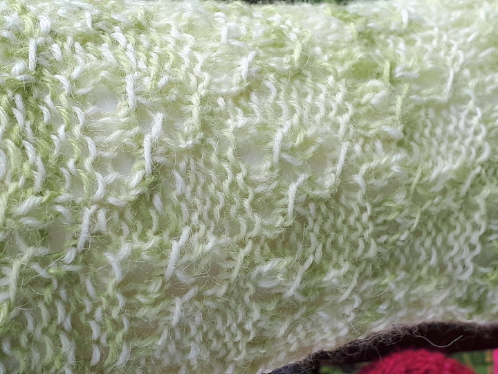 Ein schönes Lochmuster welches sowohl bei unifarbenen Garn sowie auch bei einem Farbverlaufsgarn sehr schön aussieht.