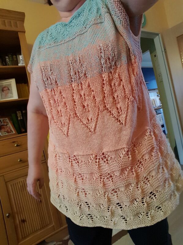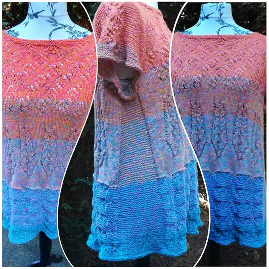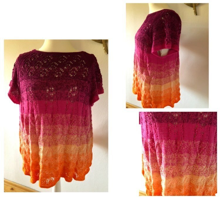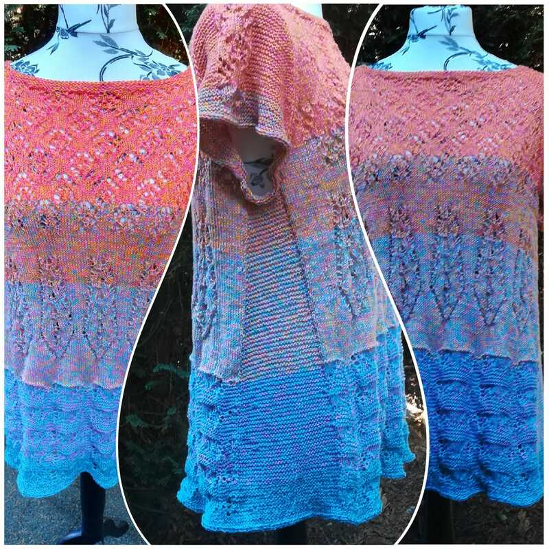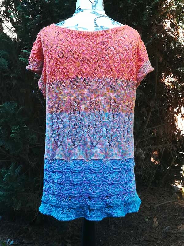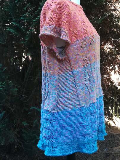 Die "Inselblüte" wird nach dem Raglan-von-oben-Prinzip in Runden von oben nach unten aus einem Farbverlaufsbobbel gestrickt.