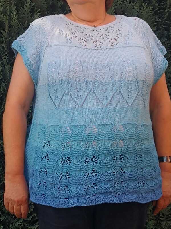 Die Größe ist variabel und wird beim Stricken individuell angepasst. Daher kann die Anleitung für alle Damengrößen heran gezogen werden. In der Anleitung sind Fotografien der Testerinnen in unterschiedlichen Größen mit jeweiliger Mengenangabe.