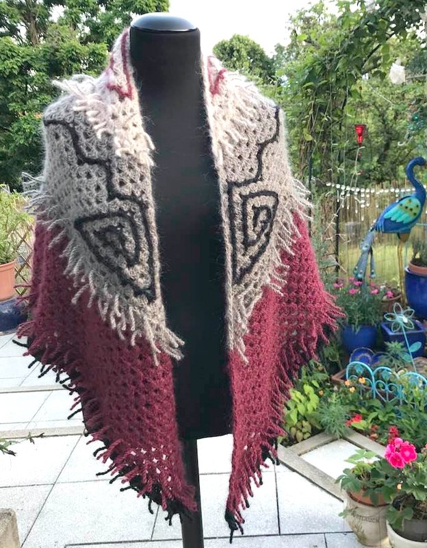 Tuch"Outlander"...ist ein eher einfaches Dreieckstuch..mit dem netten kleinen Dreadlocks am Ende jeder Farbe...