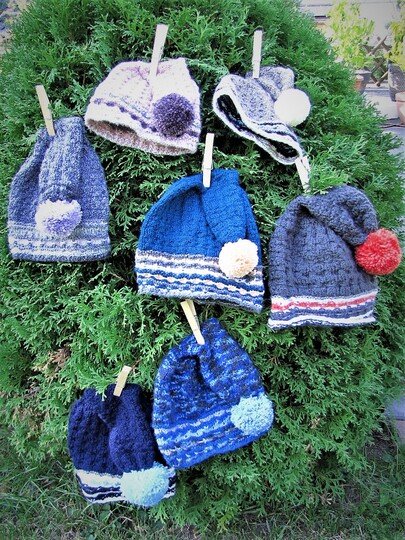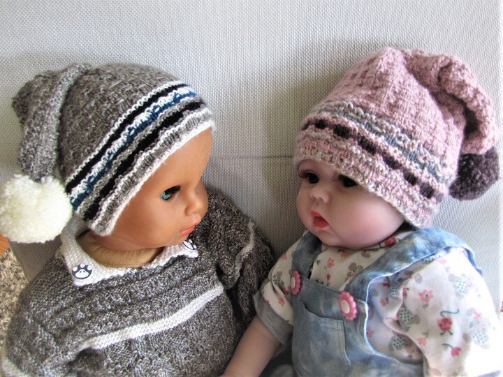 Ich habe diese Mütze letztes Jahr für meine Schwiegertochter und meinen Enkel im Partnerlook gestrickt.